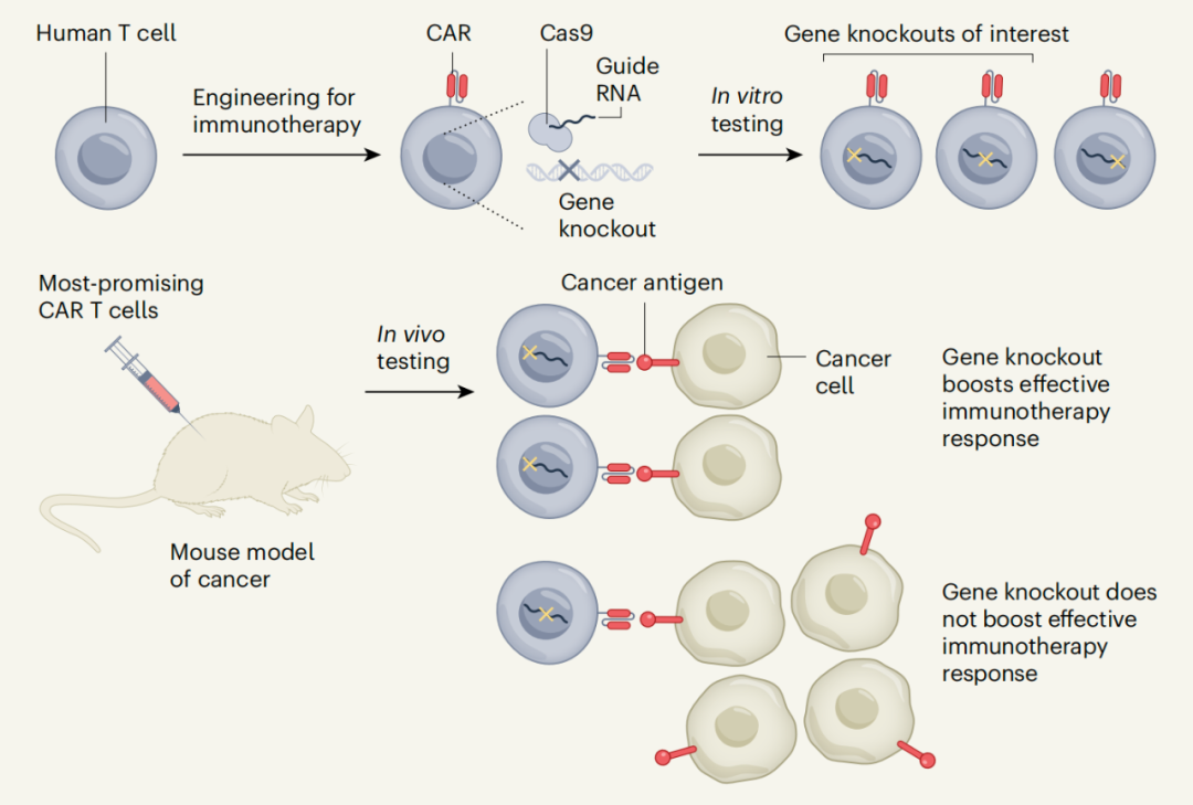 而最近,国际顶尖学术期刊Nature背靠背发表了两篇研究论文,这两项研究利用 CRISPR 筛选和大规模体内验证,评估了 CRISPR 筛选到的基因在敲除后是否能够通过增强 CAR-T 细胞的增殖和持久性来提高癌症免疫治疗效果。