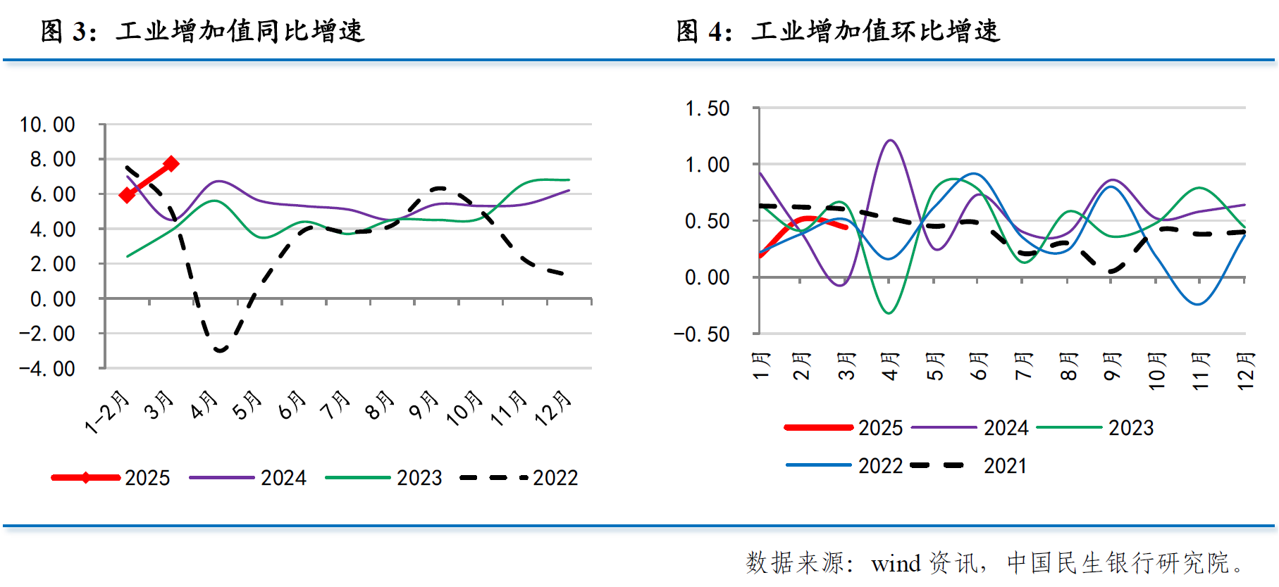 总体来看,一季度存量政策和增量政策共同显效,各地区、各部门积极抢抓开局,叠加出口向好等因素,共同推动经济开局良好。展望二季度,由于美国加征超高关税使直接出口美国受阻,世界经济秩序面临重创,外部环境更趋复杂严峻,经济持续回稳正面临压力,需密切关注4月底政治局会议是否出台增量政策。