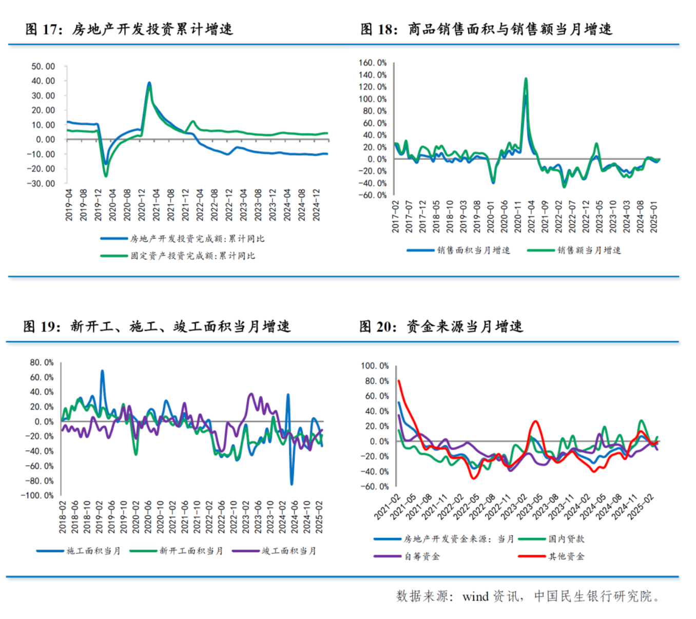 一季度全年房地产开发投资同比-9.9%,降幅较1~2月扩大0.1个百分点。我们测算的3月当月同比增速为-10.0%,又回到两位数降幅。